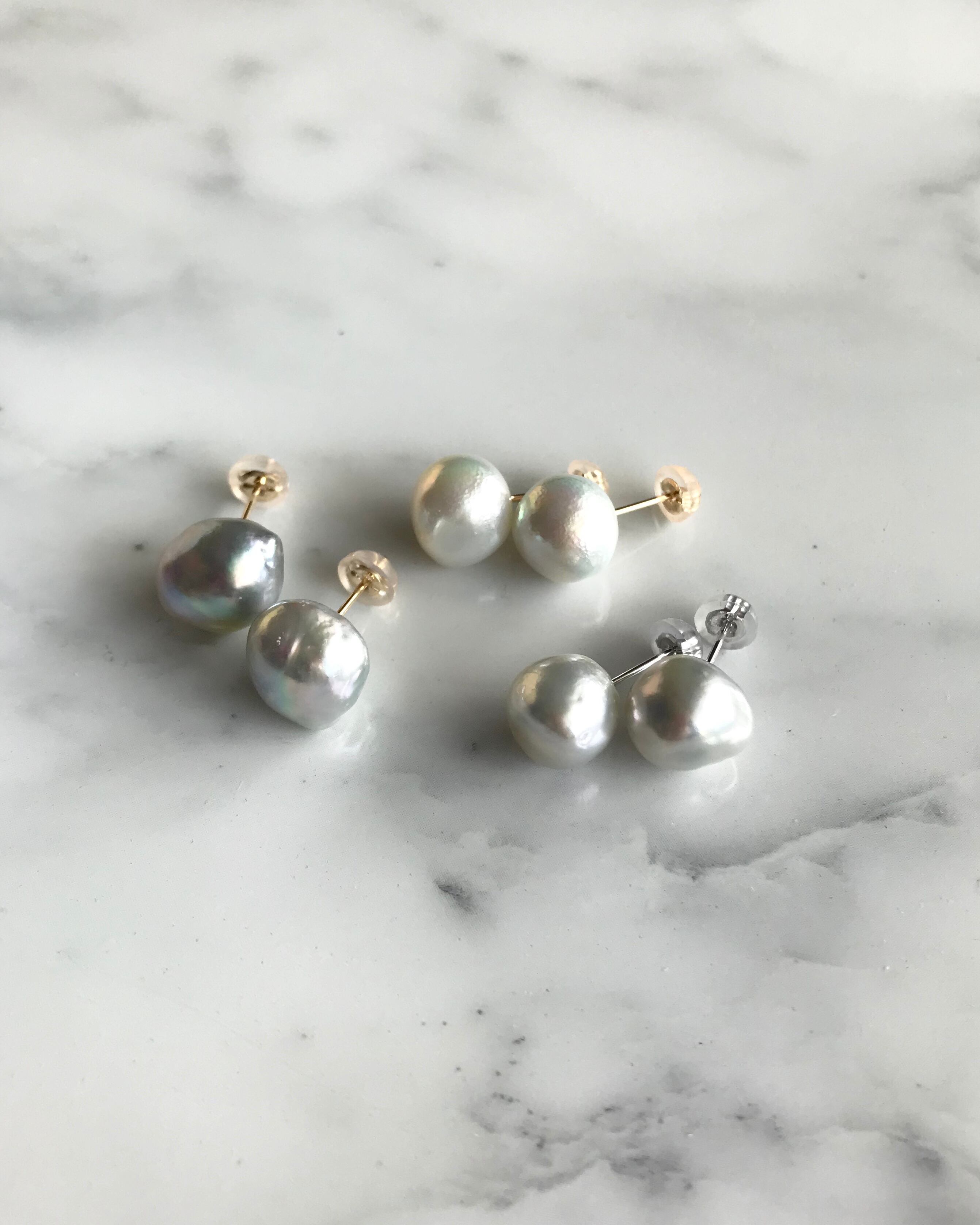 アコヤ真珠バロックパールピアス 9.5-10.0mm K14WG 無調色
