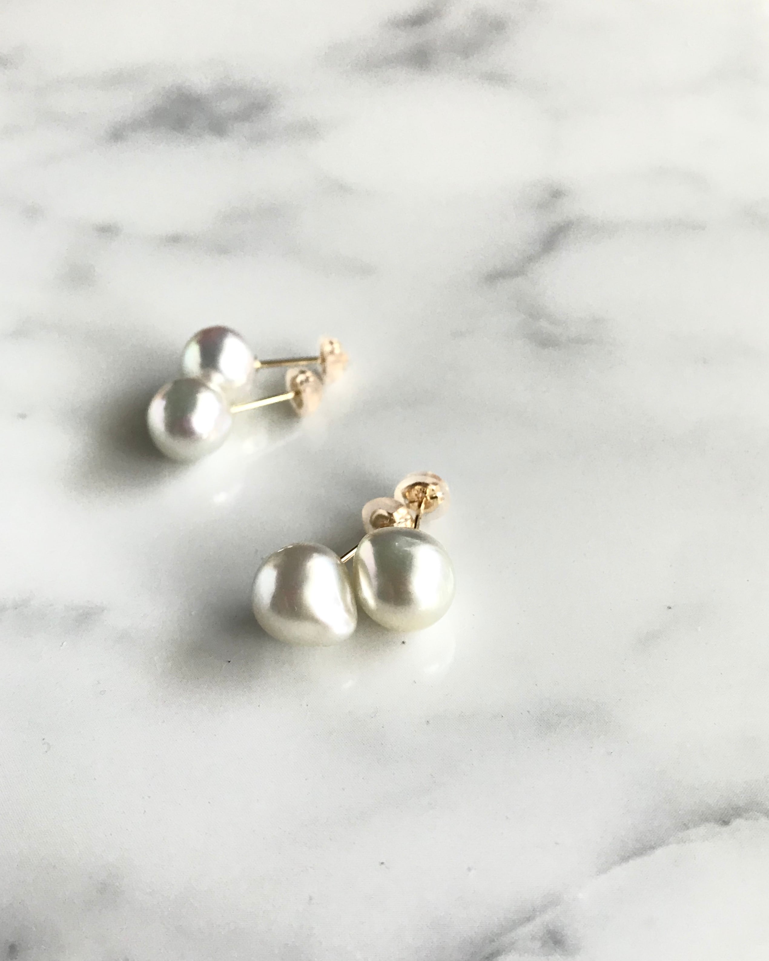 しずく型が愛らしいバロックアコヤ真珠の直結ピアスです。