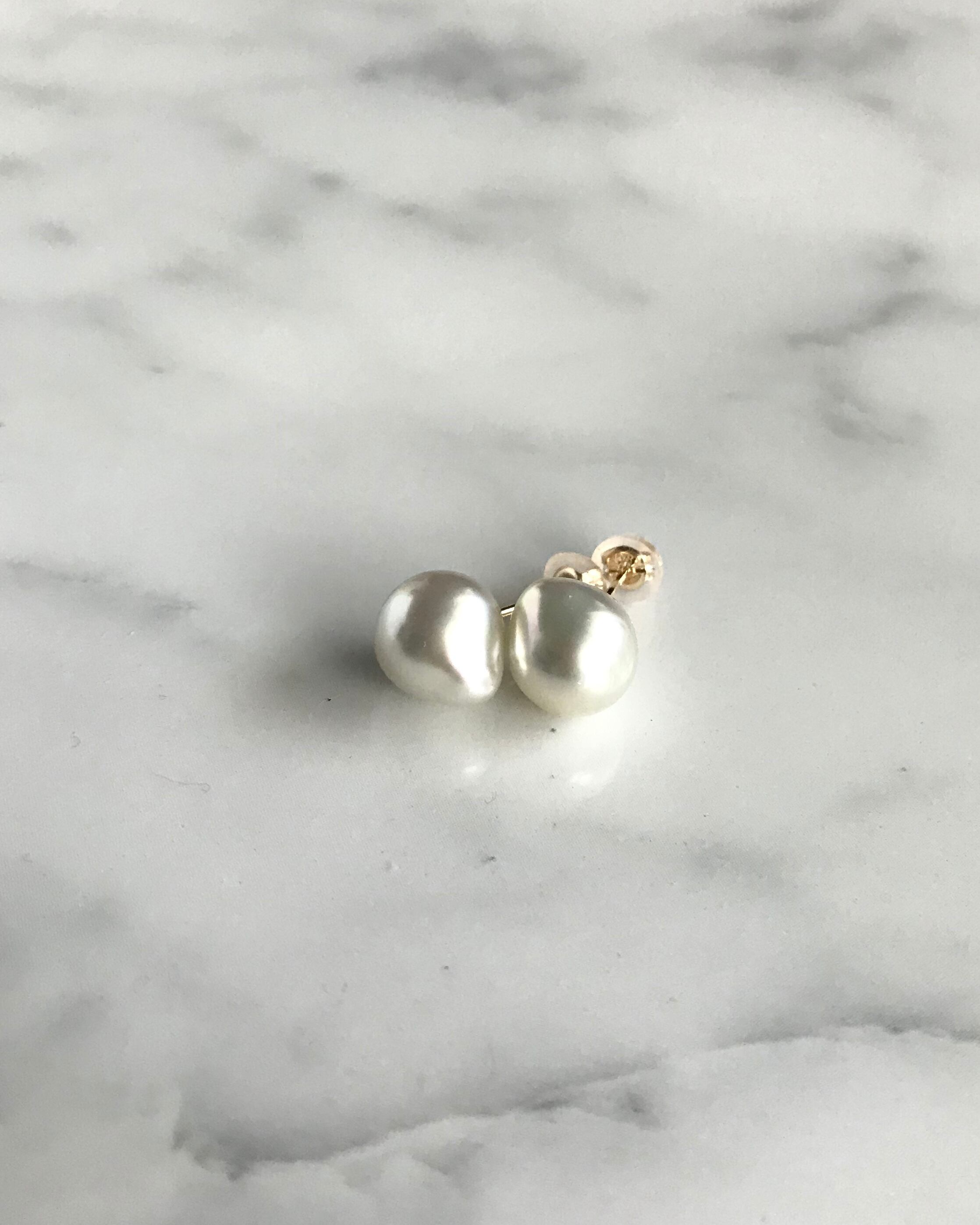 アコヤ真珠バロックパールスタッドピアス 9.0-9.5mm K18 無調色